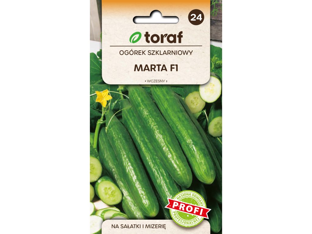 Okurka skleníková Marta F1 (profesionální odrůda) je raná, velmi výnosná partenokarpická hybridní odrůda, určená pro pěstování ve sklenících a fóliových tunelech. Rostliny mají silný a vyrovnaný růst s převahou samičích květů, díky čemuž spolehlivě nasazují plody i bez opylení. Plody jsou dlouhé, hladké, sytě tmavě zelené, dorůstají délky přibližně 30–35 cm, jsou bez hořkosti a mají jemnou, šťavnatou dužninu. Odrůda je vhodná především pro čerstvou spotřebu a salátové využití.