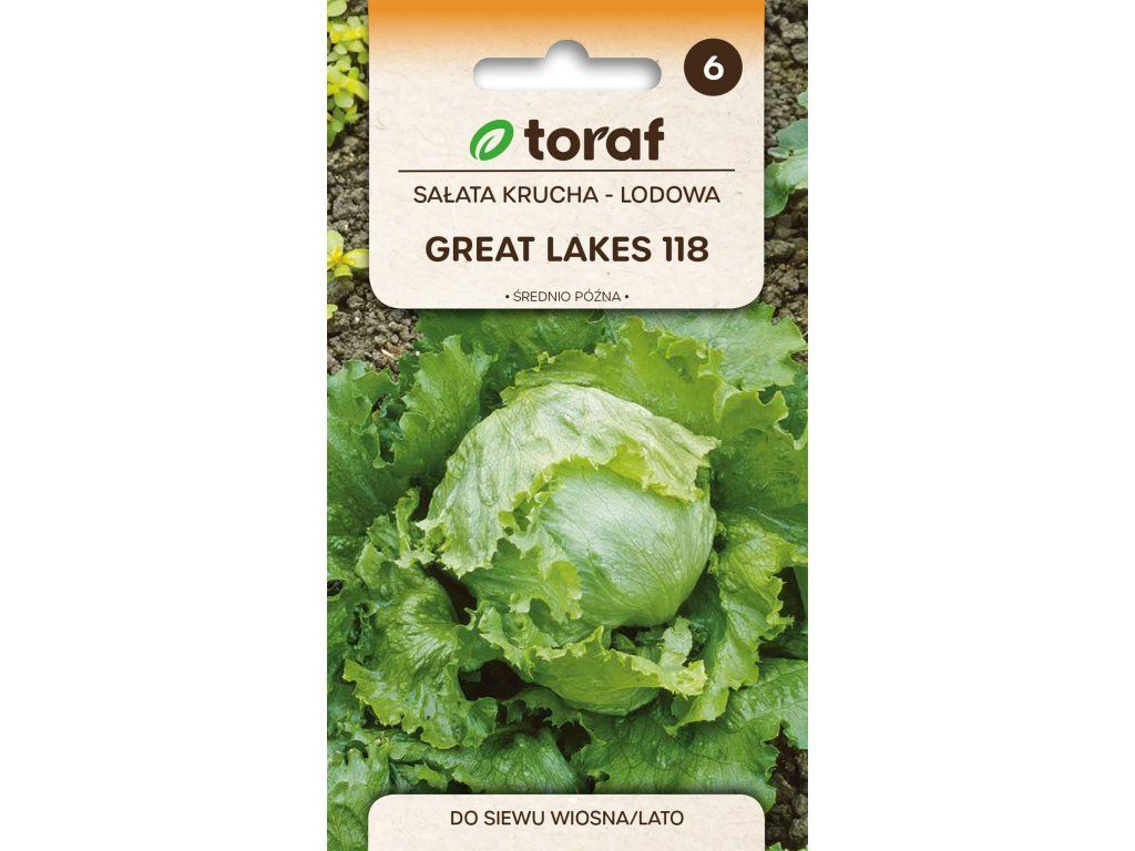 SALÁT LEDOVÝ - ODRŮDA GREAT LAKES 118 je další žhavou novinkou pro tuto sezonu a patří mezi středně pozdní (vegetační období kolem 75-80 dnů). Velmi plodná odrůda, která vytváří hlavy o váze 1000 – 1200 gramů. Jedná se o velmi kvalitní jednobarevnou – tmavě zelenou odrůdu salátu, hlava je kompaktní, listy jsou velké a křehké, křupavé, s lehce bublinovým povrchem a mají příjemnou osvěžující chuť. Salát má velmi malé sklony k tvoření okvětní lodyhy, čímž vydrží na zahradě déle bez ztráty vzhledu a zejména chuti Patří mezi odrůdy, které úspěšně lze pěstovat jak na jaro, tak koncem léta.